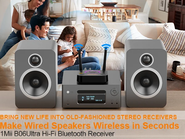 1Mii B06Ultra Bluetooth receiver for home stereo features Qualcomm Bluetooth 5.2 chip to ensure high fidelity Bluetooth audio signal for music streaming to speakers or home stereo systems that doesn’t have the capability. With the latest Bluetooth 5.2 chip, it adds Bluetooth streaming to an older stereo system, which allows you to stream wireless music seamlessly.