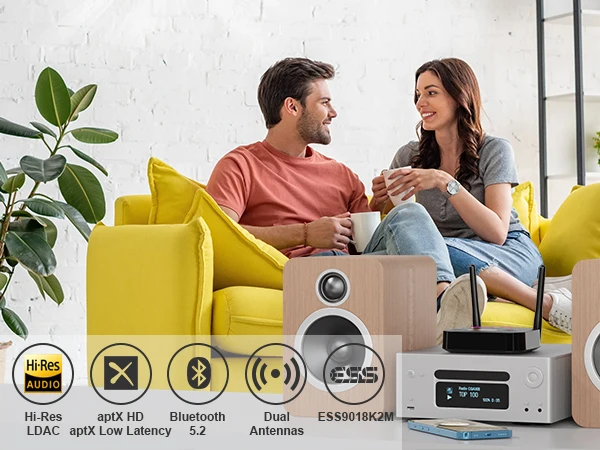 This audiophile-grade Hi-Fi Bluetooth receiver features ES9018K2M chip, delivering a performance level that will satisfy the most demanding audio enthusiasts.