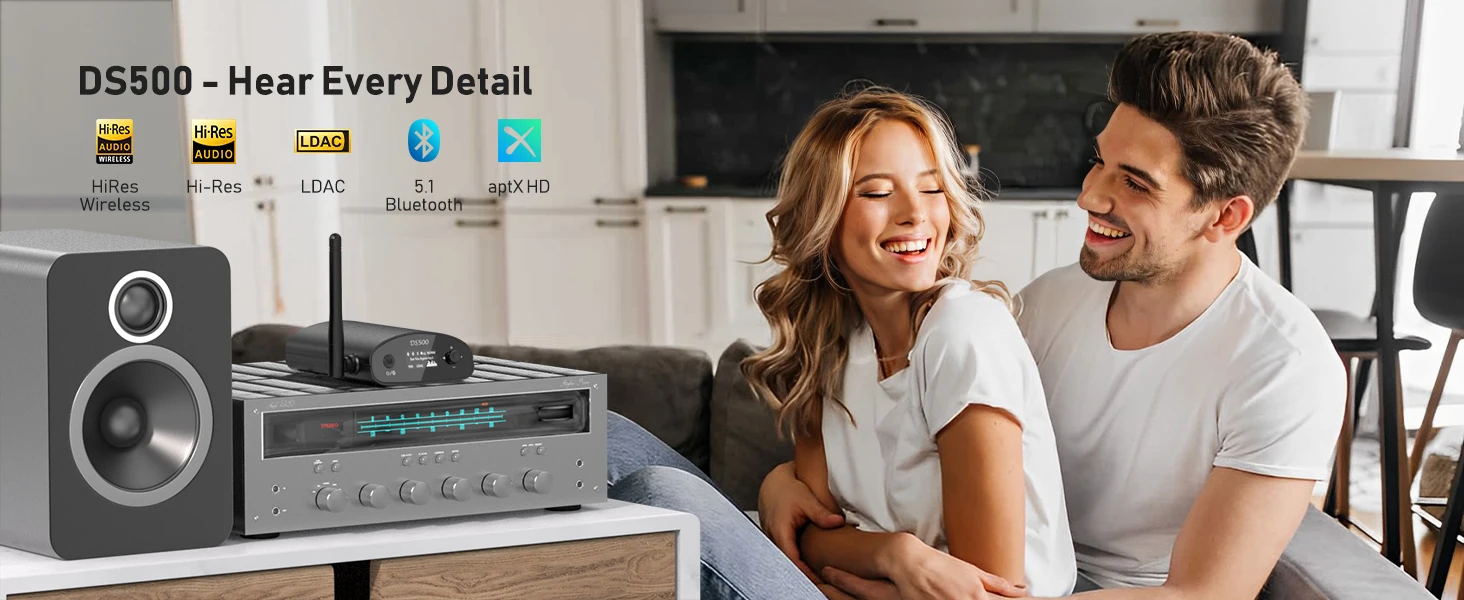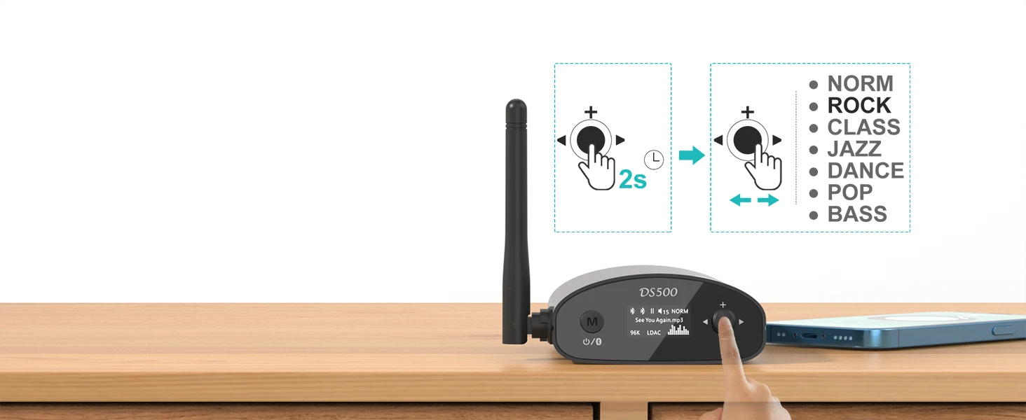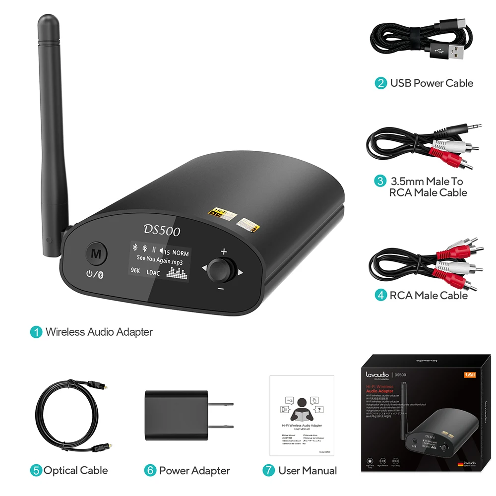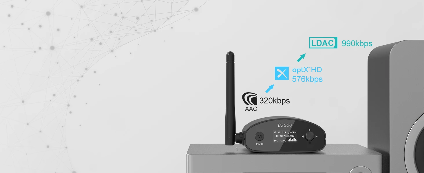 Premium Bluetooth Hi-Fi receiver with LDAC, APTX-HD, RCA & optical output, and an EQ display—designed for true audiophiles seeking lossless, high-resolution wireless audio.