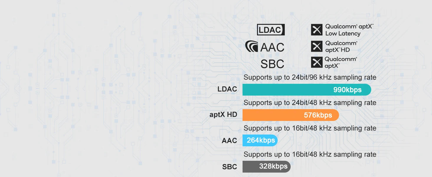Supports LDAC, APTX Adaptive/HD/LL, AAC, and SBC