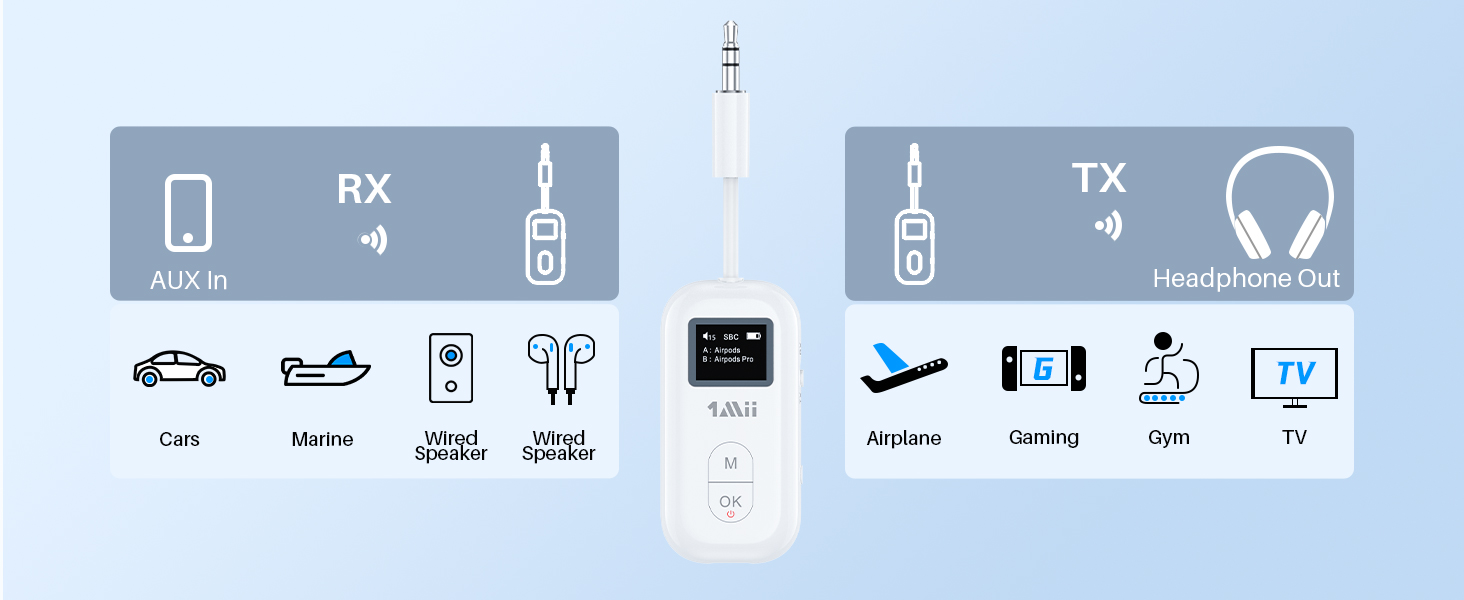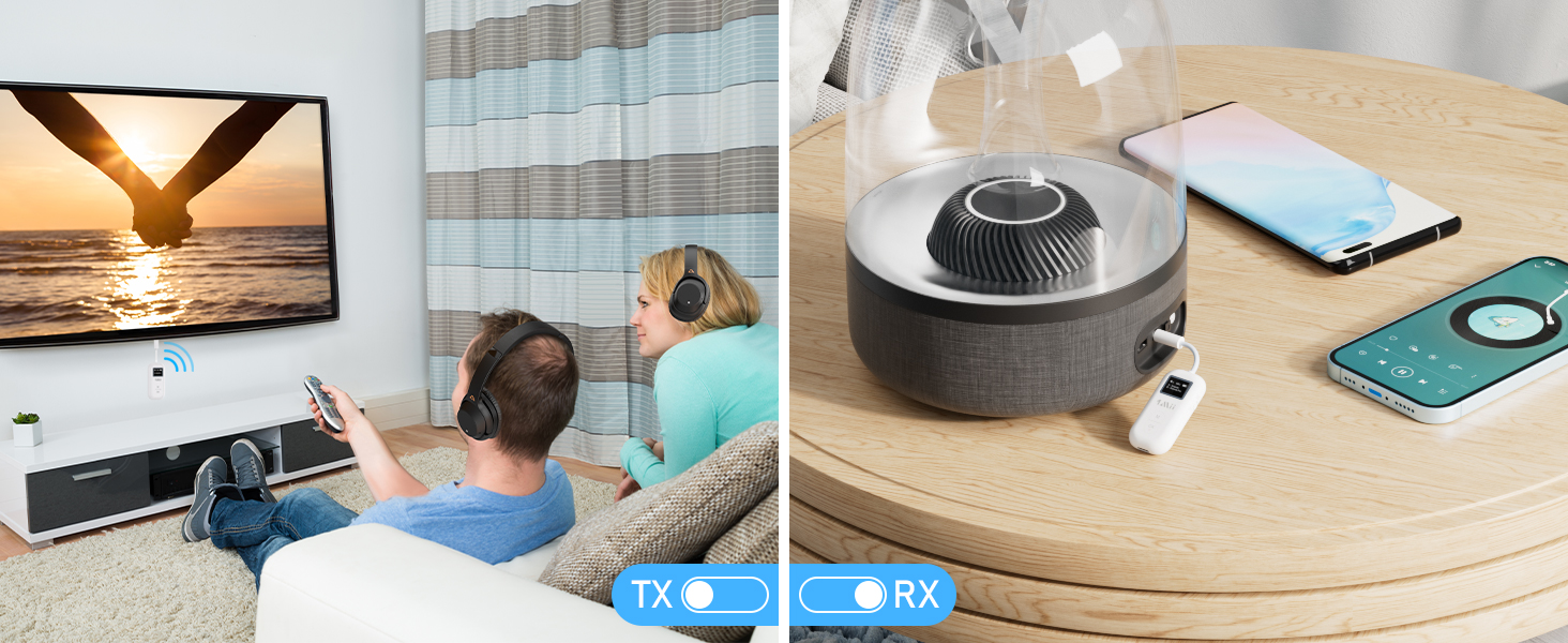 Designed for versatility, it operates in both transmit (TX) and receive (RX) modes, making it perfect for upgrading TVs, amplifiers, home stereos, or car audio systems with high-resolution wireless connectivity.