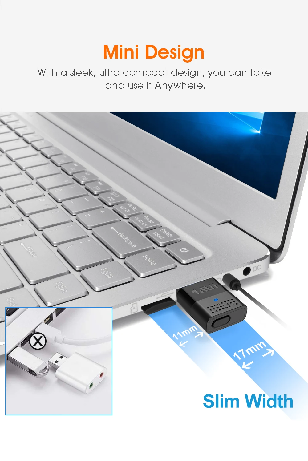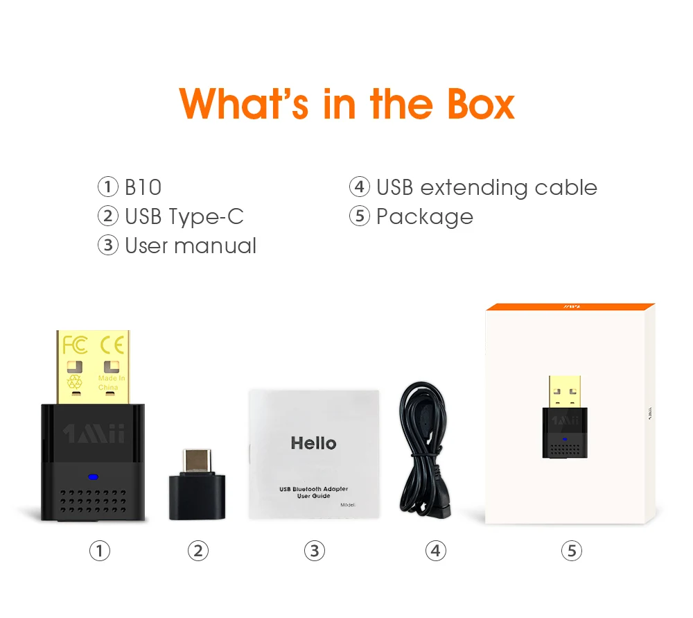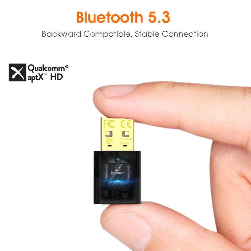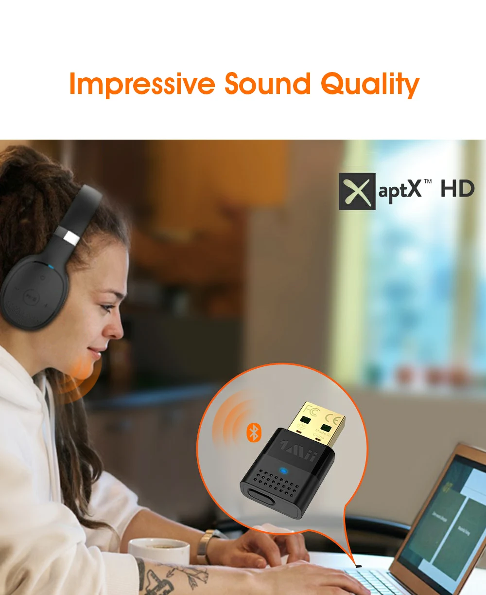 1Mii B10 USB Bluetooth Adapter with advanced Bluetooth 5.3 technologies, your USB Audio Transmitter is backward compatible with Bluetooth 4.2/4.0/3.0/2.0 and it can deliver more stable wireless to your devices. B10 USB audio adapter can conveniently enhance your non Bluetooth devices with Bluetooth audio feature.