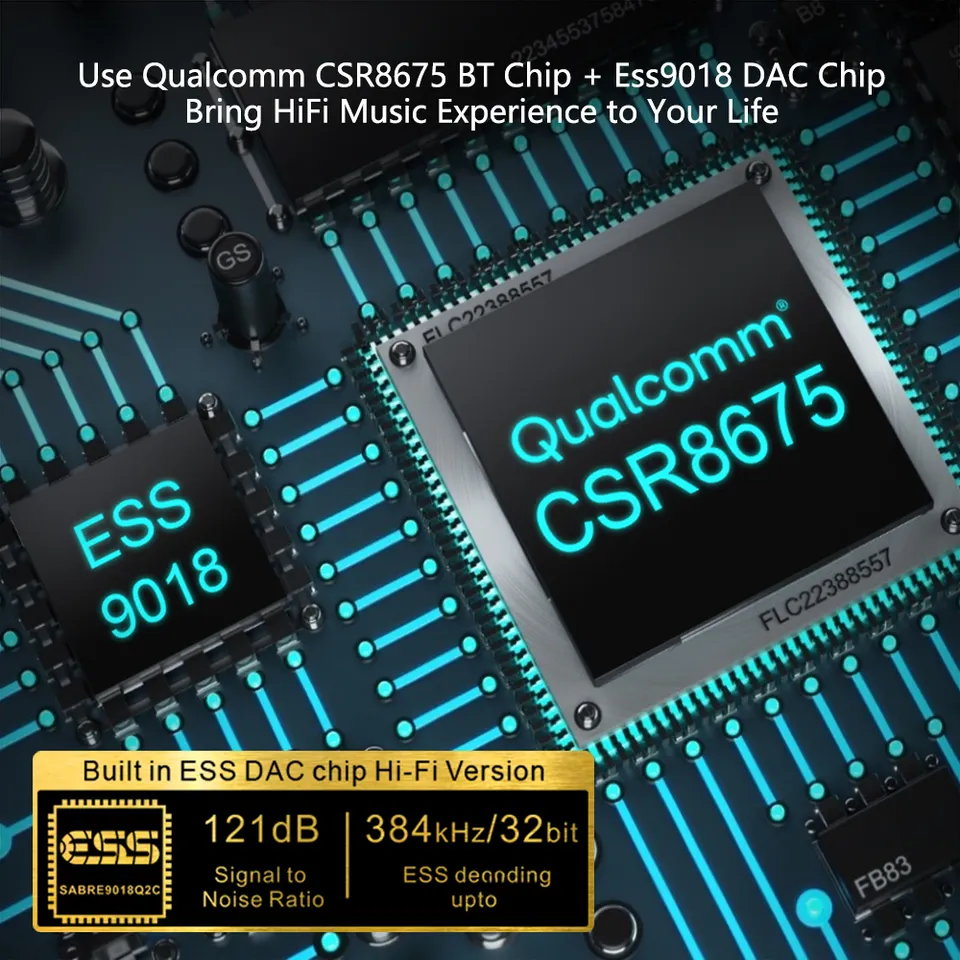 Introducing our Hi-Fi Luxury Bluetooth Transmitter & Receiver, engineered for those who demand uncompromising audio performance. Powered by the Qualcomm® QCC3040 Bluetooth 5.2 chipset and equipped with a dedicated ESS SABRE9018 DAC, this adapter supports up to 384kHz/32-bit audio resolution with ultra-low distortion and 121dB dynamic range—delivering a truly immersive sound experience.